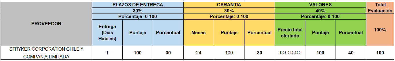 En caso de existir empate entre dos o más propuestas se adjudicará al proponente que tenga el mayor porcentaje en el criterio “Precio del producto”. De persistir el empate será adjudicado aquel proveedor con mayor puntaje en el criterio “Plazo de entrega”; de haber otro empate, se adjudicará al proveedor el cual haya subido primero la oferta en la plataforma www.mercadopublico.clDocumentos adjuntos